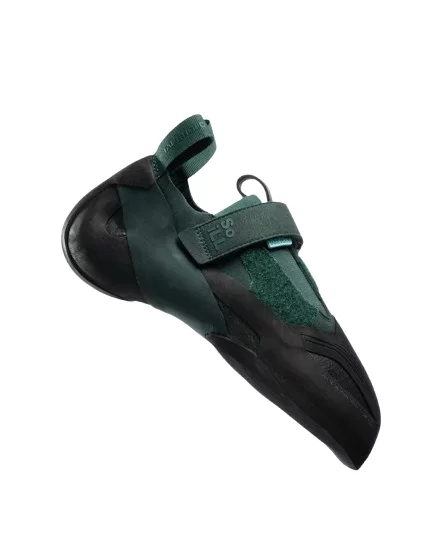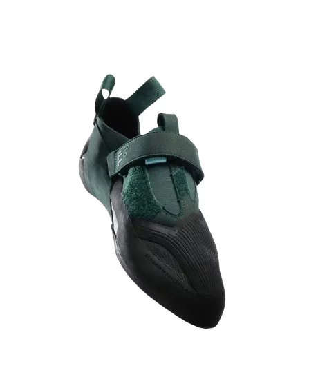 Системата за закопчаване включва две велкро ленти, които осигуряват сигурно и персонализирано прилягане. Твърдата междинна подметка подобрява стабилността при стъпване на ръбове, а специално разработената гума предлага отлично сцепление и триене на различни скални повърхности.