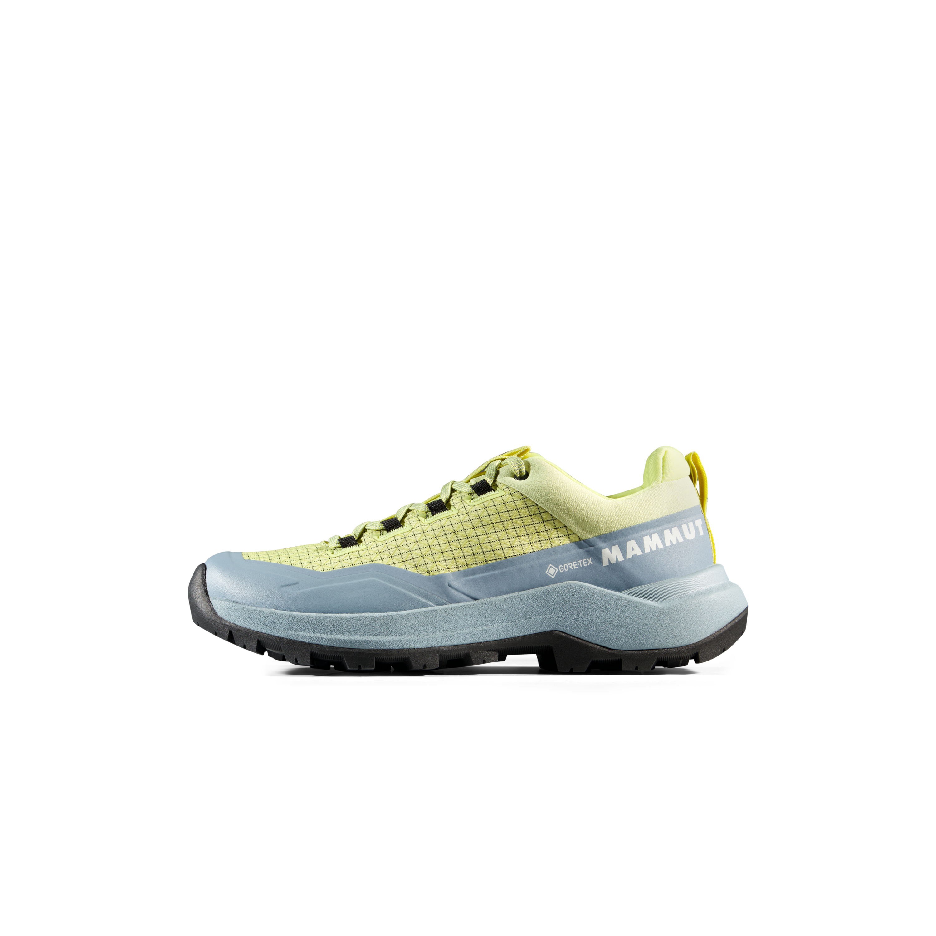 Горната част е изработена от Double Layer Engineered Mesh, което съчетава ниско тегло и добра издръжливост. Производителят подчертава и наличието на abrasion-resistant fabric upper и rubber rand, които повишават защитата и устойчивостта на обувката при контакт с по-груби повърхности. Външната подметка Mammut Swiss Design е създадена за надеждно сцепление при ниски температури, което прави модела сигурен избор за смесен терен и по-хладни условия.