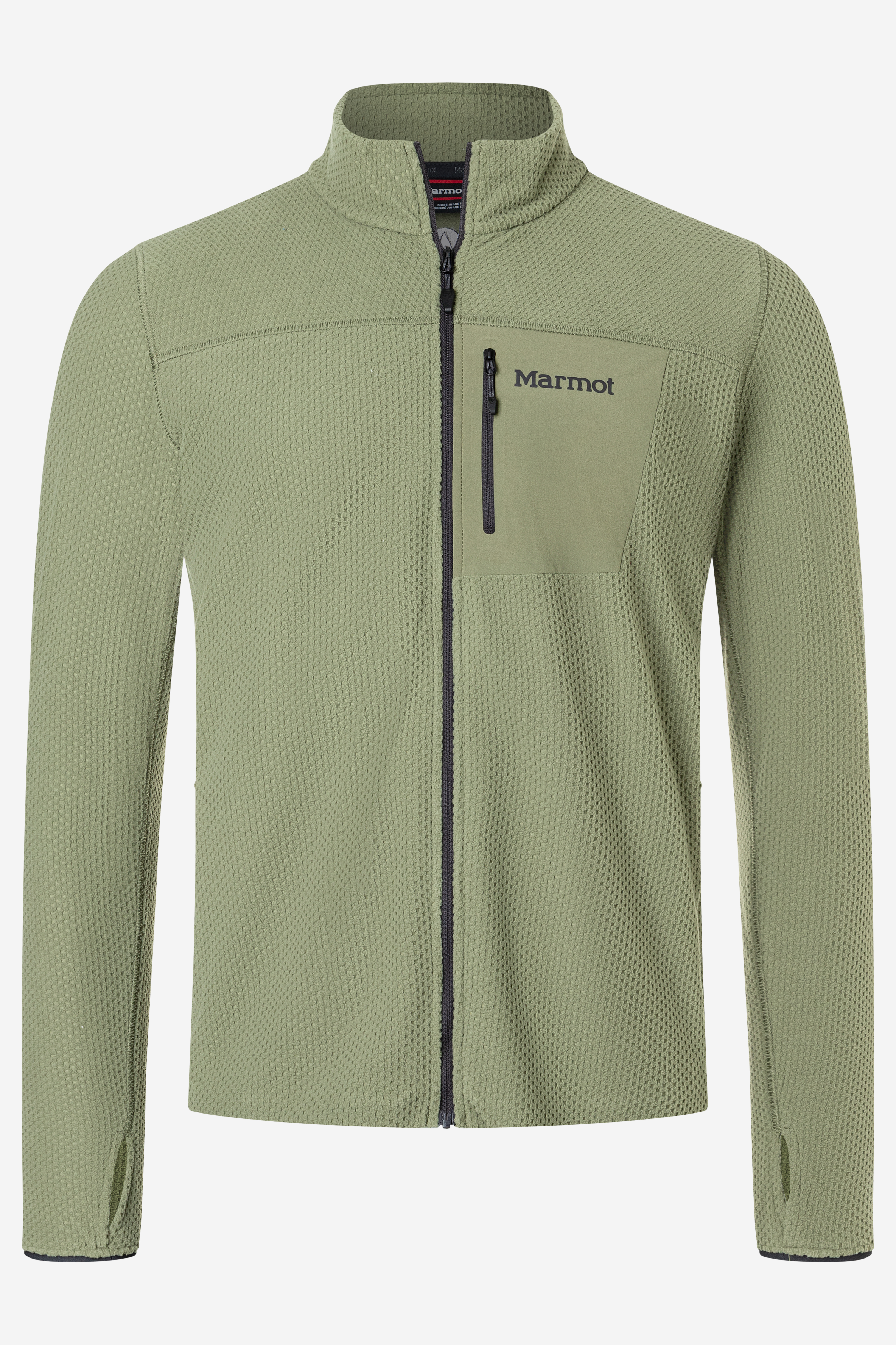 Marmot AirFleece Jacket е мъжко леко флийс яке с цял цип, създадено за туризъм, layering и активна употреба на открито. Изработено е от 100% рециклиран полиестерен жакардов полар с характерна checkerboard grid структура, която подобрява дишаемостта, задържа топлината и намалява обема, а slim fit кройката го прави отличен междинен слой под shell яке или раница.