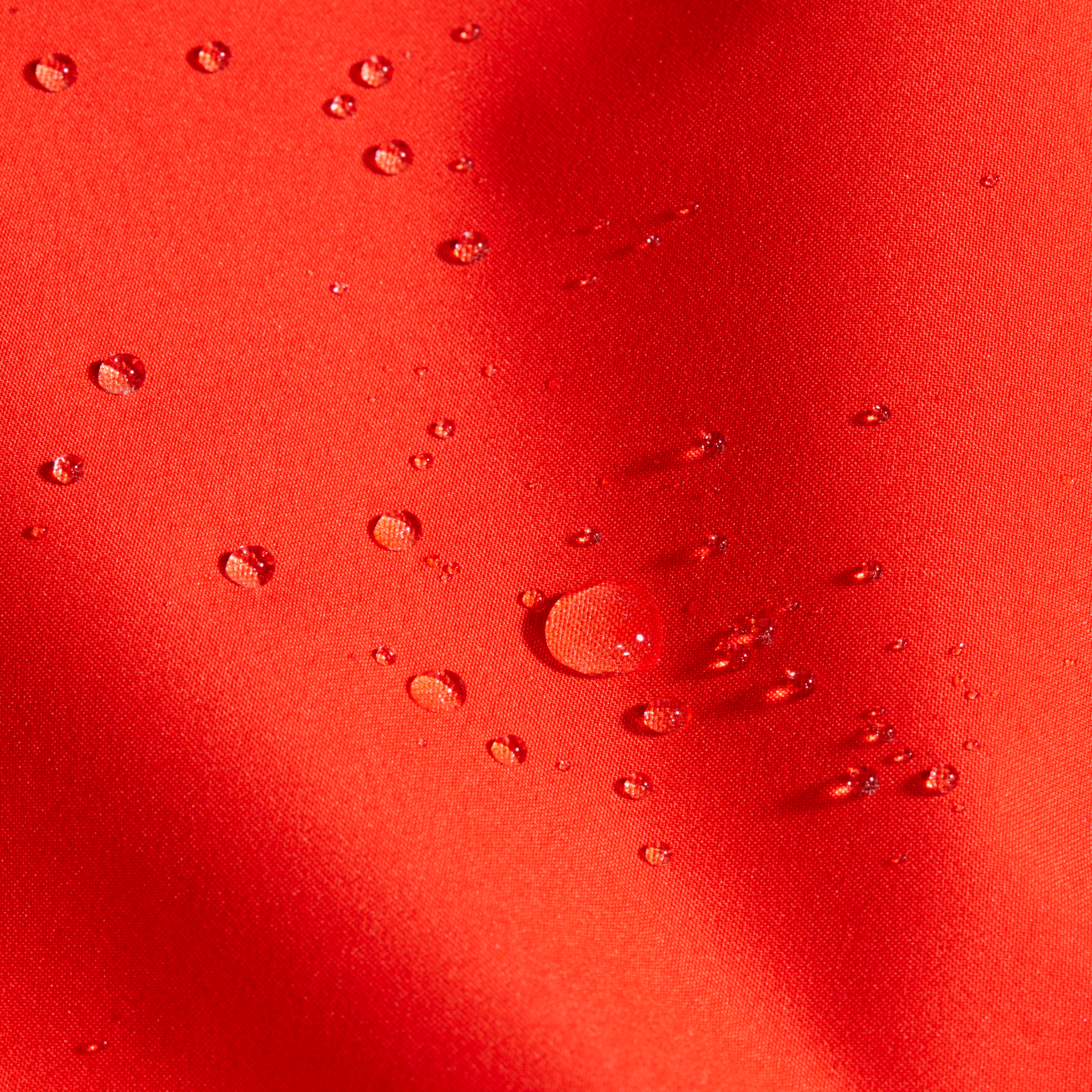 Якето е изработено с 2-слоен Mammut DRY Tour ламинат, който осигурява стабилна защита от атмосферни влияния. Материята е ветроустойчива, а водният стълб от 10 000 mm и дишаемостта от 10 000 g/m²/24h допринасят за добър баланс между защита и комфорт при носене. Допълнителната PFC-free DWR обработка помага външният слой да отблъсква влагата по-ефективно.