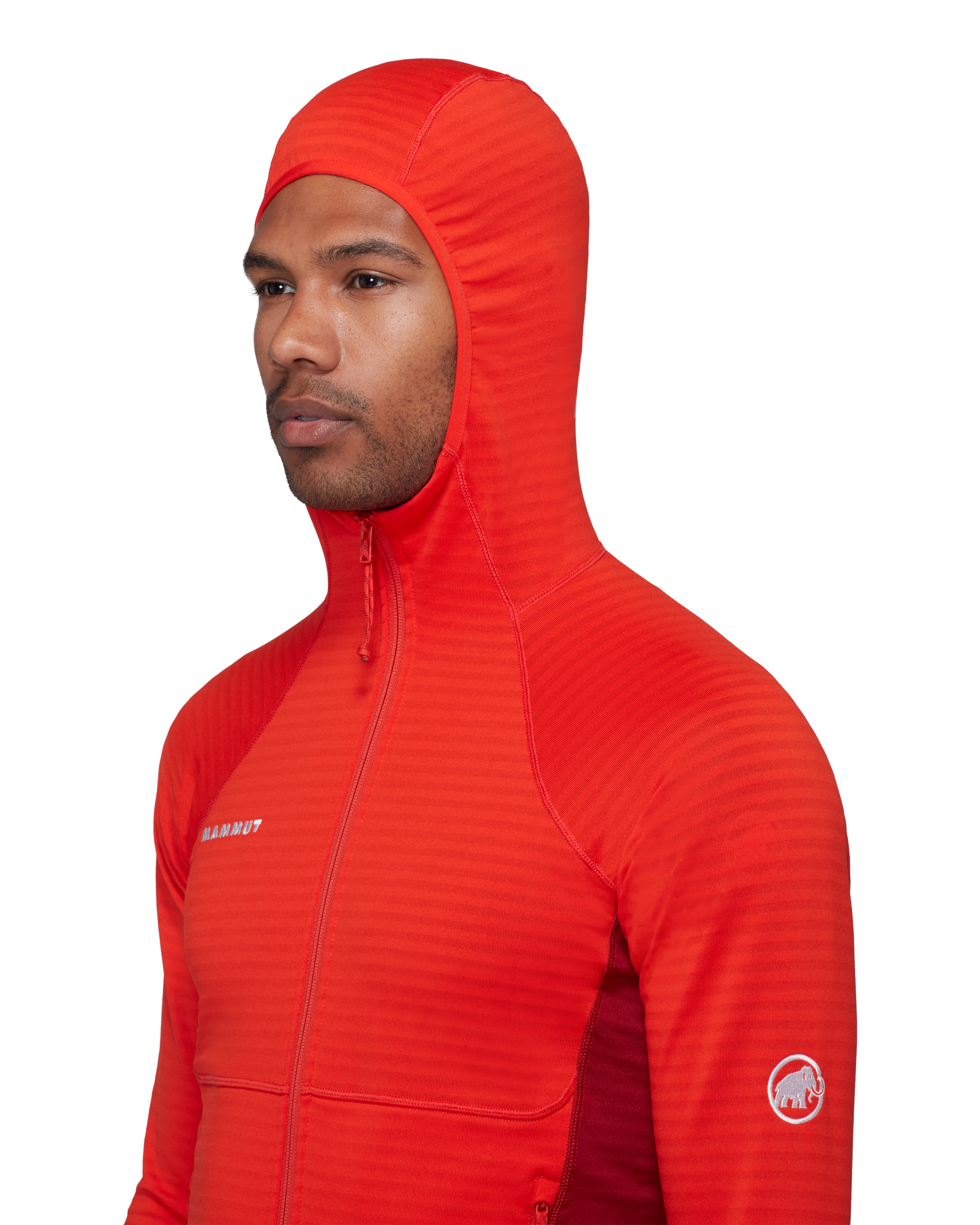 Кройката е Athletic Fit, което позволява по-прецизно прилягане към тялото, без да ограничава движението. За по-голяма функционалност моделът разполага с два джоба с цип, съвместими с раница и катерачна седалка, както и с функционален underarm gusset, който подпомага оптималната свобода на движение. Допълнителен комфорт осигуряват удобните отвори за палците и плоските шевове, които намаляват риска от протриване под презрамките на раница. Бродираното лого Mammut завършва чистия технически дизайн на модела.